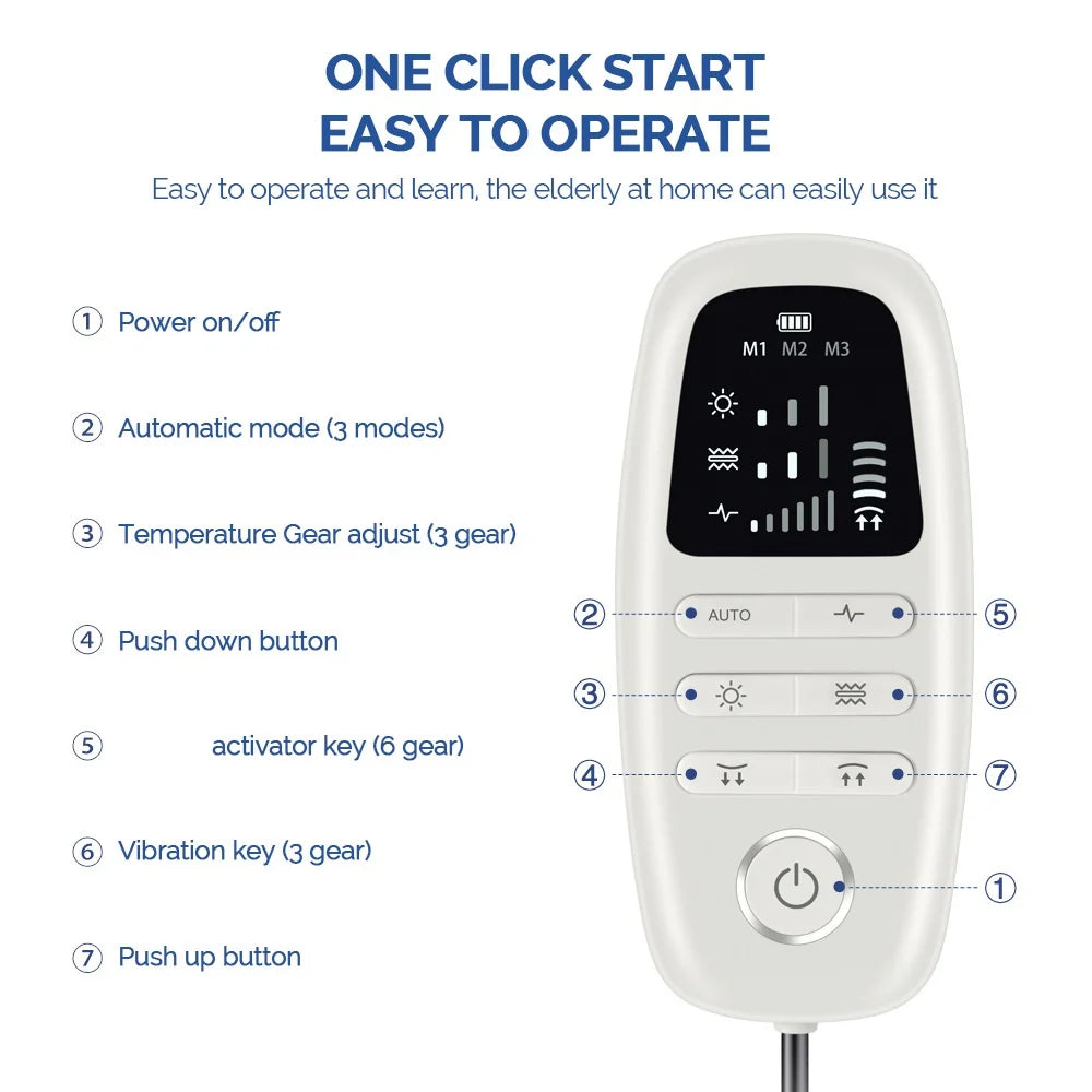 Adjustable Vibration Relief – Multiple vibration levels target waist soreness and stiffness.